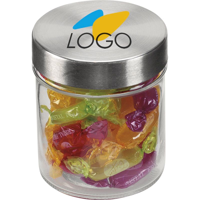 Bonbonglas ohne Bonbons (Gegen Aufpreis mit 150g Bonbons). In Geschenkverpackung.