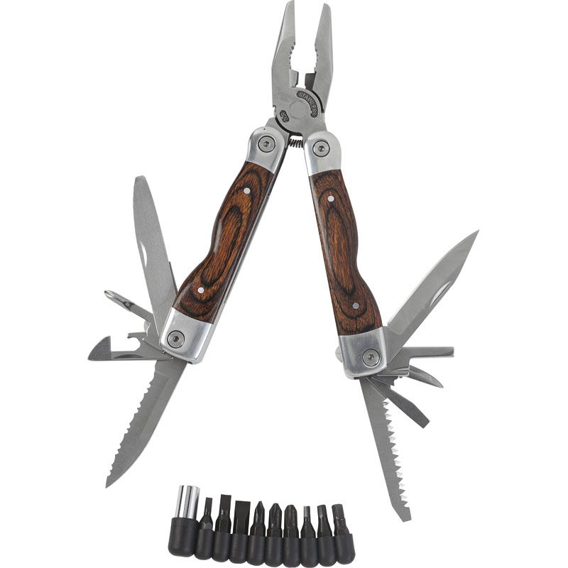Multizange aus Edelstahl 10-teilig/ 13 Funktionen mit Holzhandgriffen und extra Set mit Einsteckbuchse und 9 Bits. Im Nylonetui. Alle Preise zzgl. Kosten für die Werbeanbringung. Bei erwünschter Werbeanbringung auf dem bestellten Produkt, bitte einen Kommentar am Ende der Bestellung (Bestellschritt 5) abgeben. Wir setzen uns dann so schnell wie möglich mit Ihnen in Verbindung. Abnahme auch in geringeren Mengen möglich. Preise und Rabatte nach Absprache. Druck: Tampondruck: 35 x 15mm Größe: 13.5 x 7 x 4.5cm |