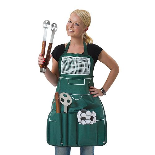 Für Grill-Profis. BBQ-Set im Fußball-Look, bestehend aus einer Schürze mit Pfannenwender, Gabel, Zange und Handschuh. Grillzubehör kann vorne in die Schürze in verschiedene dafür vorgesehene Taschen hineingesteckt werden. Alle Preise zzgl. Kosten für die Werbeanbringung. Bei erwünschter Werbeanbringung auf dem bestellten Produkt, bitte einen Kommentar am Ende der Bestellung (Bestellschritt 5) abgeben. Wir setzen uns dann so schnell wie möglich mit Ihnen in Verbindung. Abnahme auch in geringeren Mengen möglich. Preise und Rabatte nach Absprache. Material: Textil |