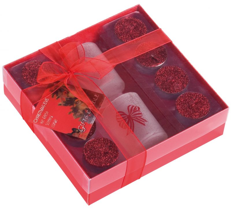 Weihnachtliches Kerzenset bestehend aus acht rot-glitzernden Teelichtern, dazu zwei passende Windlichter aus Milchglas mit Schleifendekor. Alles verpackt in einem roten Geschenkkarton mit Klarsichtdeckel. Gebunden ist der Karton mit einer roten Schleife an der sich eine Weihnachtskarte befindet. Alle Preise zzgl. Kosten für die Werbeanbringung. Bei erwünschter Werbeanbringung auf dem bestellten Produkt, bitte einen Kommentar am Ende der Bestellung (Bestellschritt 5) abgeben. Wir setzen uns dann so schnell wie möglich mit Ihnen in Verbindung. Abnahme auch in geringeren Mengen möglich. Preise und Rabatte nach Absprache. Werbefläche: 4 x 1.8cm Größe: 18.5 x 18 x 5cm |